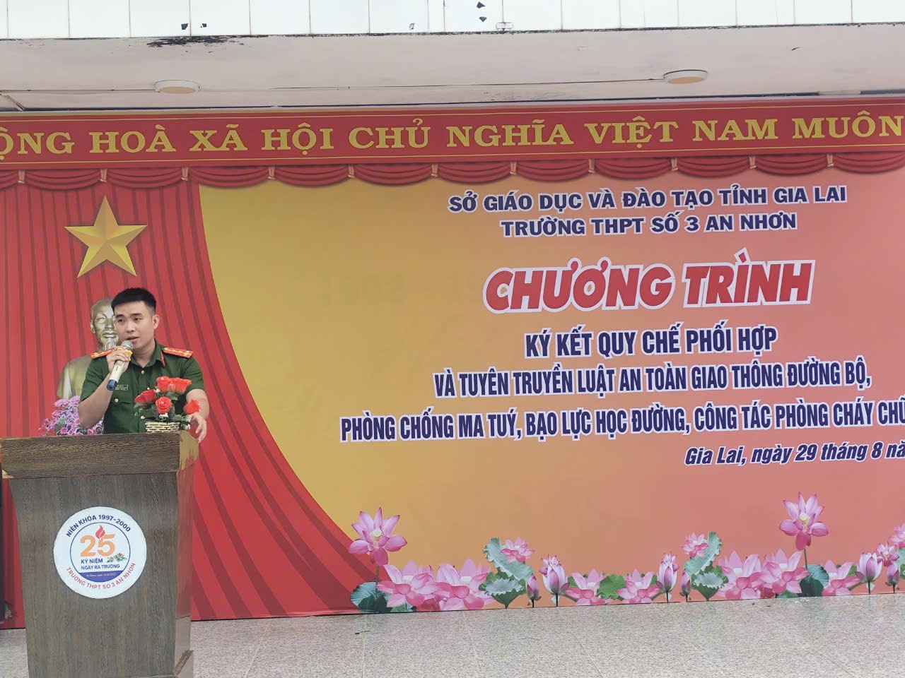 Tại chương trình, đại diện lãnh đạo công an phường và BGH nhà trường đã thống nhất cùng ký kết quy chế phối hợp đảm bảo về an ninh trật tự trường học, phòng chống tội phạm học đường, phòng chống tệ nạn xã hội, giáo dục pháp luật cho học sinh, đảm bảo an toàn giao thông, phòng chống cháy, nổ năm học 2025 – 2026. Đồng thời, công an phường còn tổ chức tuyên truyền, phổ biến kiến thức pháp luật và kỹ năng phòng cháy chữa cháy, phòng chống ma túy, bạo lực học đường. Qua đó, công an phường cùng các em học sinh nhà trường giao lưu trả lời câu hỏi về chuyên đề TTATGT và PCCC.