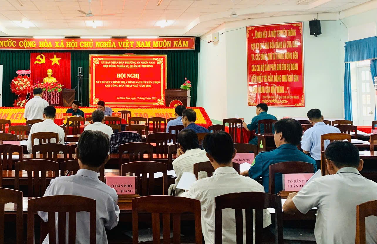 Phường An Nhơn Nam tổ chức xét duyệt chính trị nam thanh niên trong diện tuổi nhập ngũ, chuẩn bị cho công tác giao quân năm 2026